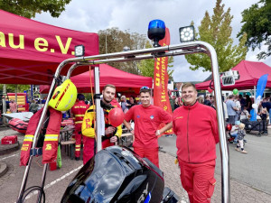 Viele Gäste nutzten die Gelegenheit, uns Fragen zu stellen und mehr über die ehrenamtliche Arbeit der DLRG zu erfahren. Für uns war es ein erfolgreicher Tag mit vielen interessanten Gesprächen und Begegnungen – und vielleicht konnten wir den ein oder anderen für das Ehrenamt in der Wasserrettung begeistern.